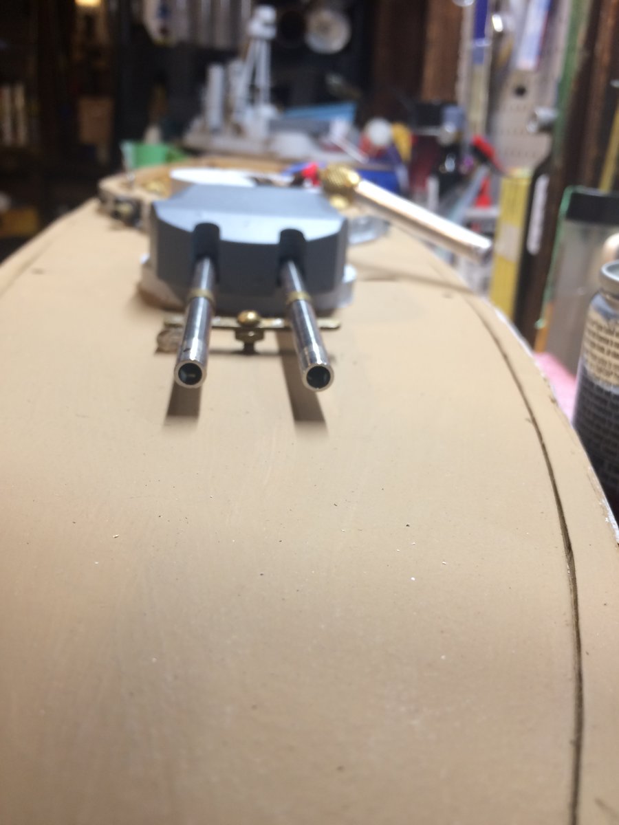 It is a fixed gun. The barrel just barely clears the deck as it crosses over. Having it elevate would be nice so that it could also be a stern gun, but simple and reliable seemed to be the smart...
