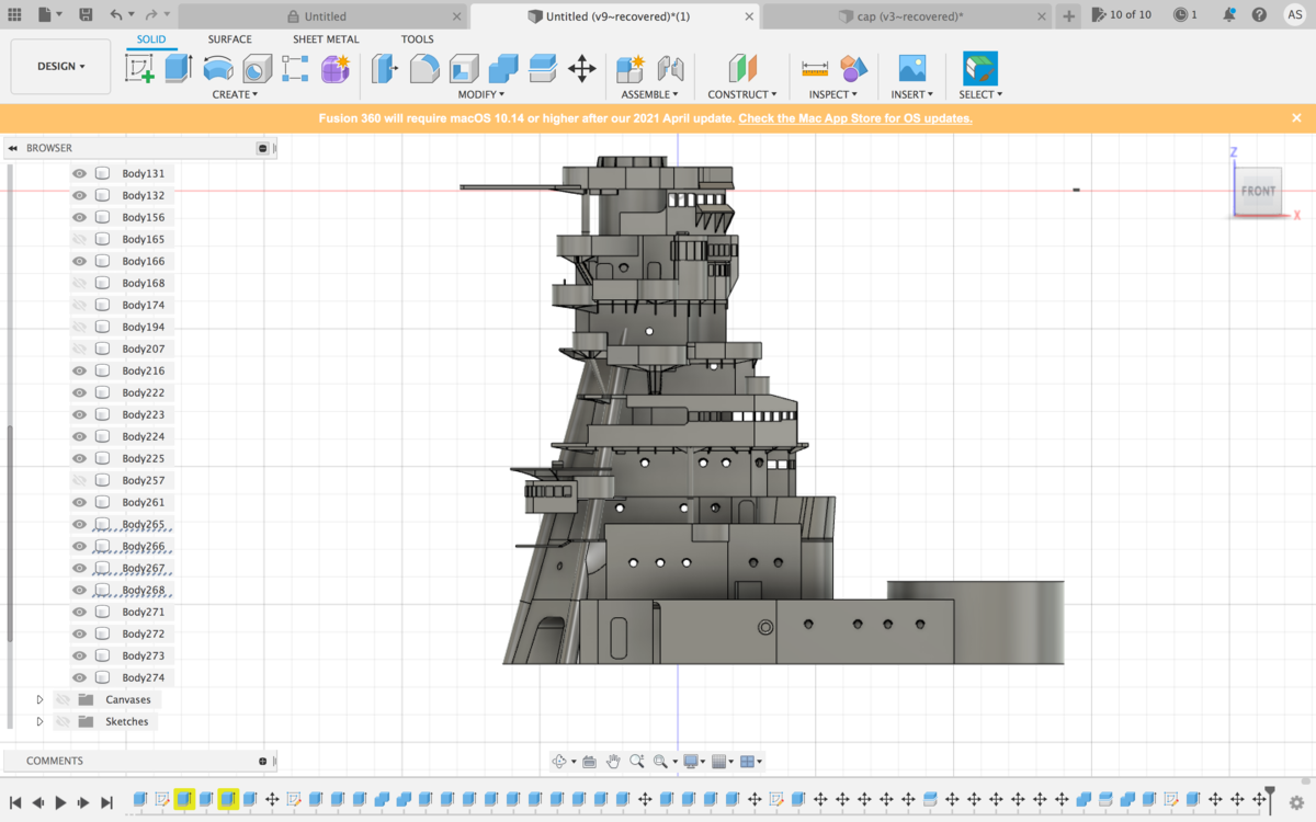 Cad almost finnished for forward structure, printing the base at the moment, while redesigning the window structure above the bridge.