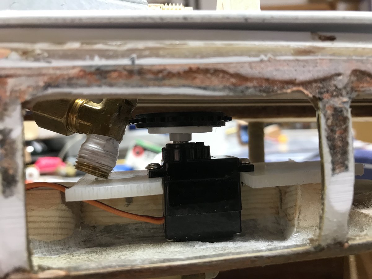 It is a fixed gun. The barrel just barely clears the deck as it crosses over. Having it elevate would be nice so that it could also be a stern gun, but simple and reliable seemed to be the smart...