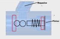 Yes, Marty, here is a photo of what's going on inside. When the piston is actuated, one of the bb's is pushed through the o-ring and is then fired. The spring returns the piston, another bb drops into place ready to fire again.