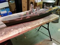 After some extremely easy sheeting and some paint, Italian Camouflage! Scheme was worn in the spring of 1942 until sometime around November when the 2-tone dazzle scheme she wore until the end of the war was painted on. Still need to add the barber poles to the bow area but looking pretty good so far I'd say.