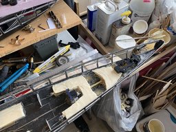 Lots of work today, deck rim and getting rudder post done. Making videos so fewer pictures Rudder posts had to change to solid tube all way through since I had alignment issues with the split tubes. Now just servo piece moves as needed various gear tests, through the 4 rudder post locations Showing the removable piece deck pieces subdeck in