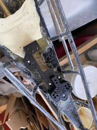 Got the rudder mount in tonight - definitely the most complex rudder mount I've done. 2nd print with a few tweaks came out great. Gear spacing was perfect, looks like the fore/aft shifting will work printed a top piece to better support the brass tubes since they will be split between the halves drilled first hole from bottom using the mount as a guide to get the hole centered, then drilled from the inside through the mount servo fits great, perfect hole alignment Clearance. important to consider subdeck height. Designed to be 5/8 from the deck edge, so 1/4" below subdeck I always put a longer rod through to make side the post is vertical Epoxy prep low profile, filled in around the base to make it solid fiberglass going up sides Good grouping on the posts. They'll get cut down just slightly beyond the hull